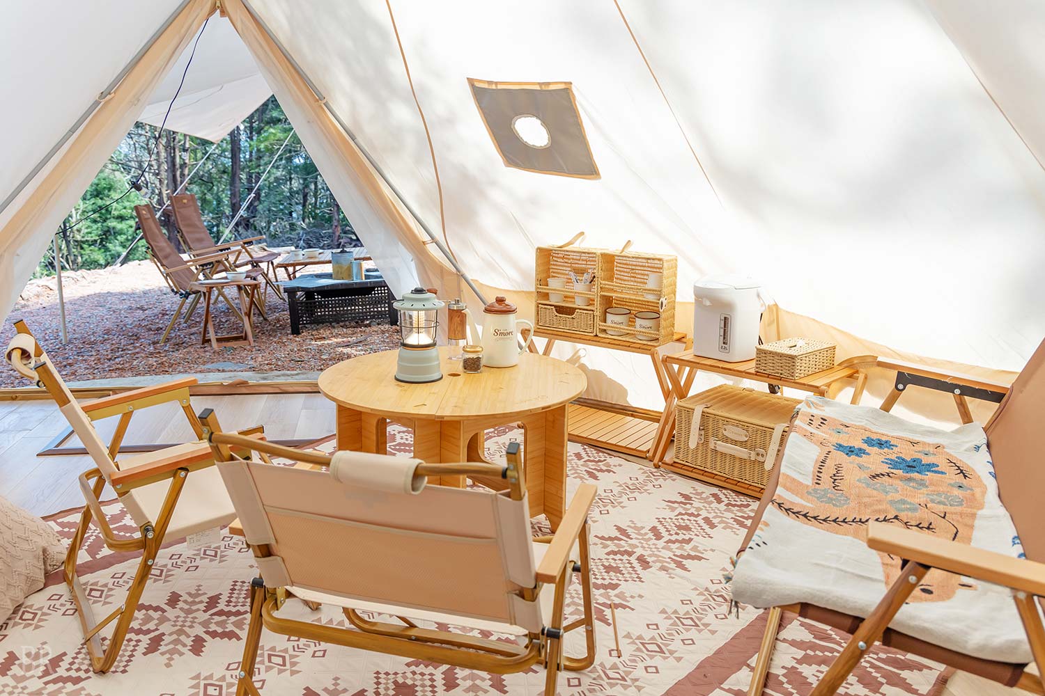 「S'more」社のキャンプギアに囲まれた特別なグランピング体験、ぜひお楽しみください!